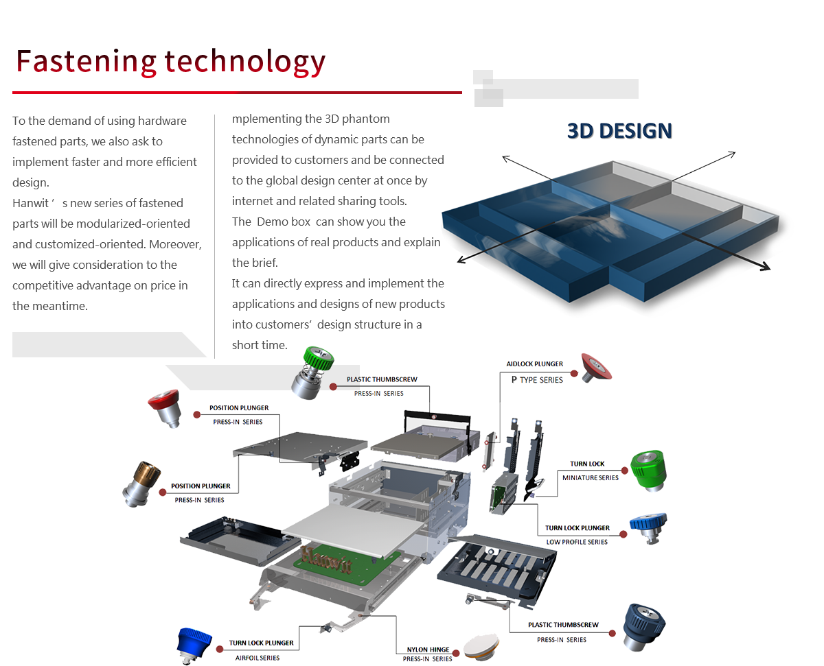 The founded spirit of Hanwit is following the ideal below: Redefine a simple part of a fastener and focus on the application of all fields.Research and develop diverse designs which conform to the structure of continuity and originality.With time evolution, Hanwit has deeper expectation with fasteners.